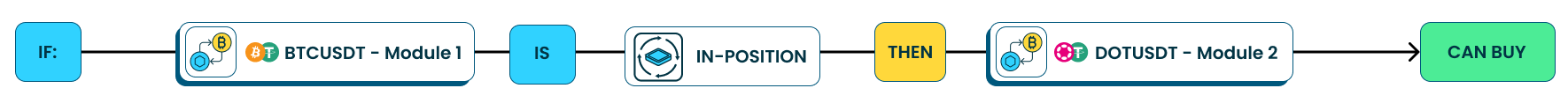 \[IF] Module 1 \[IS] \[IN POSITION], \[THEN] Module 2 \[CAN BUY].